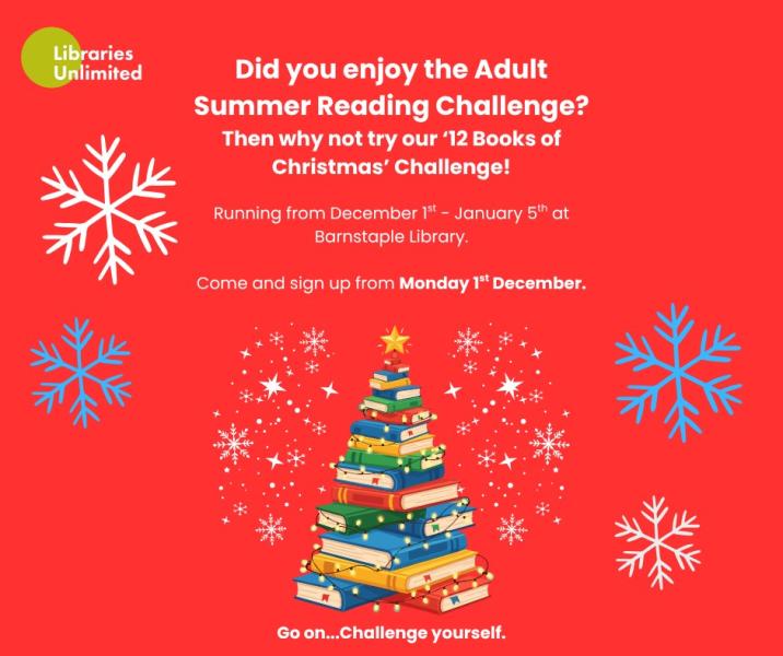 We're excited to announce that we will be running a festive reading challenge for adults, starting 1st December and running until 5th January 2026!