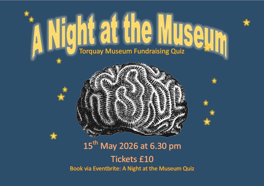 Join us in person for the Torquay Museum Fundraising Quiz! It's a fantastic chance to have a blast, challenge your brain, and support a great cause. With rounds covering a variety of topics, there will be something for everyone. So gather your friends and family, bring your best trivia skills, and join us for an unforgettable night. Whether you're a quiz whiz or just in for fun, everyone’s welcome. Don't miss out on a night full of laughs and friendly competition! WIth prizes for the winners.