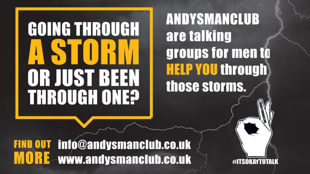 Andys Man Club is a suicide prevention charity which holds peer to peer support groups for any man aged 18+ 7-9pm every Monday (except Bank Holidays) at over 330 venues across England, Scotland and Wales.