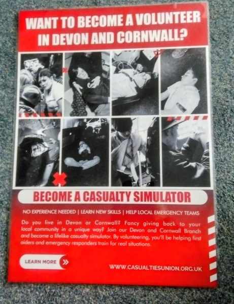 We are Casualties Union, a charity who aims to bring realism to all levels of First Aid training be it Scouts or Drs, Paramedics etc. Full training provided to complete a member level grade and beyond. Work at your own pace and enjoy meeting like minded vollunteers. Check out as below for further info.