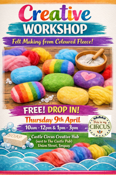 Using beautiful colourful fleece from sheep, you can design and make a felted bar of soap. Magic. This is a method of wet felting and is easy and takes about 30 minutes. No experience required.