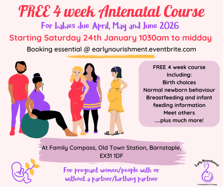 FREE 4 week Antenatal Course. Including information about labour, birth, feeding and life as a new parent.