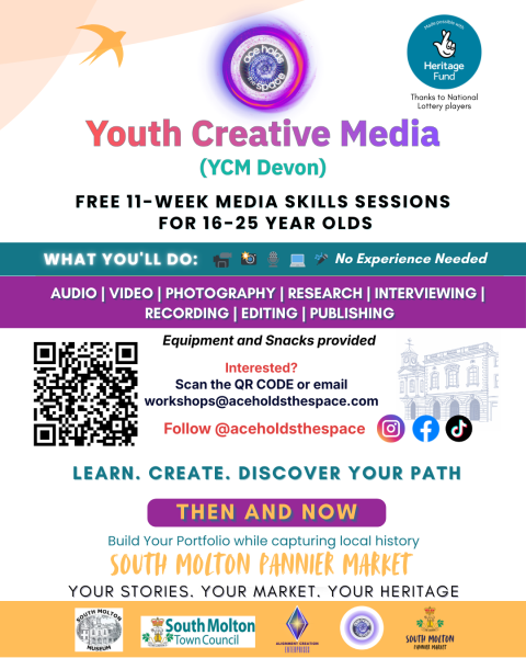 If you want to secure your space though visit our website or socials and message us 👆 @aceholdsthespace #YCMDevon #YoungVoicesInHeritage #SouthMolton #FreeWorkshop #MediaSkills