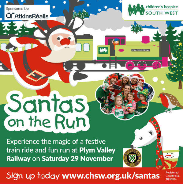 There are just 120 places available per wave. Spectators and dogs are ONLY permitted at the race start line at Plymbridge. Join our Santas on the Run Plym Valley Railway Facebook event to keep up to date with all the latest event news and updates.