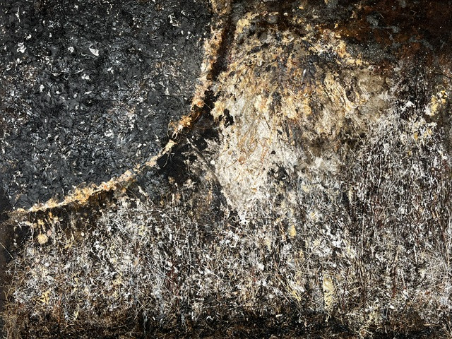 Developed over three years, The Yellowing draws on early Christian painting, apocalyptic imagery from the Books of Revelation and Enoch, and the psychological transformations of alchemy. Frake expands his palette—especially yellow and gold—taking cues from Byzantine icons and the colour symbolism in Georg Trakl’s poetry. Through processes of burning, boiling, and prolonged drying, surfaces shift and stain: whites degrade into yellows and browns, textures become unstable, and citrinitas—the often-neglected alchemical “yellowing”—emerges as both radiant and corrupting. The result is a series that embraces fragility, unpredictability, and impermanence.