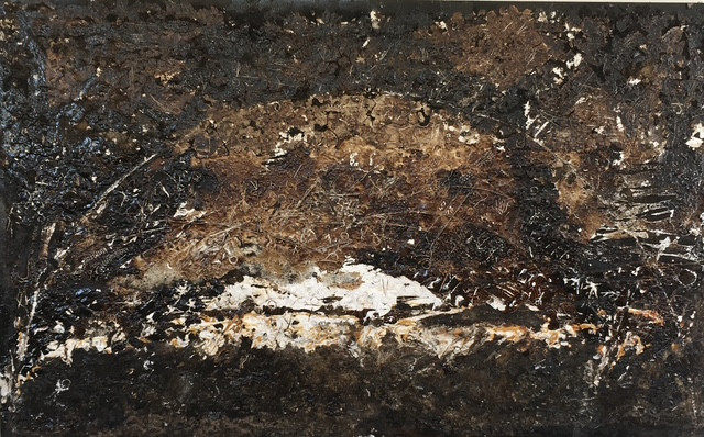 Through burning, boiling and extended drying, surfaces shift and stain: whites mutate into ochres and browns; textures crack, scar and settle. The works embrace fragility, unpredictability and impermanence, reflecting contemporary anxieties while celebrating material transformation.